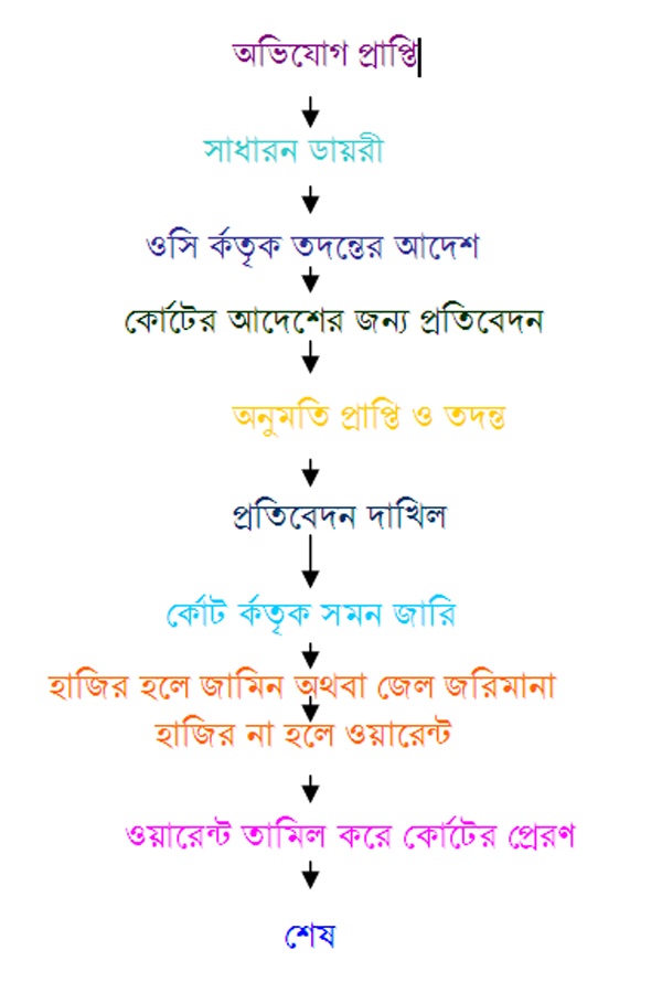 ০১। থানার নন.এফ.আই. আর মামলা প্রসেস ম্যাপঃ-